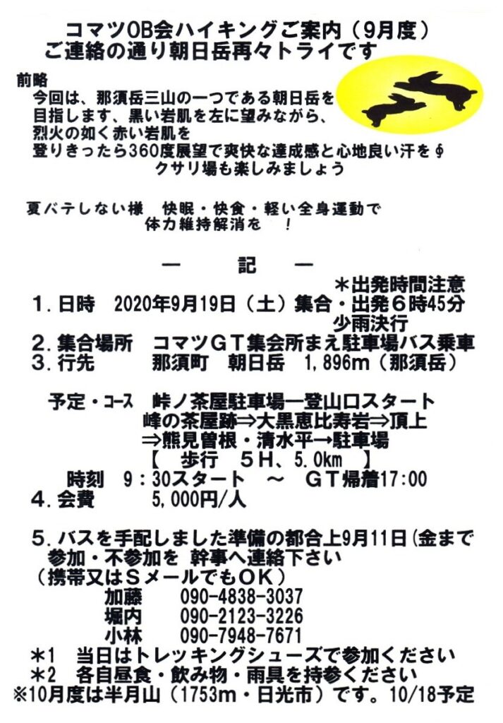 ハイキングクラブ9月度はコロナ禍や天候不良により再々トライとなった 9/19(土) 那須町:朝日岳 1896m です。皆様のご参加をお待ちしております。