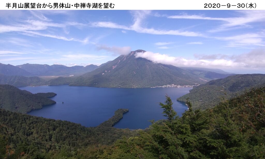 参考までに 9/30(水)下見ハイキング でのコースタイムは次の通りです。歌ヶ浜10:04-狸窪10:42-11:37半月峠11:44-12:05半月山展望台12:34-半月山山頂12:41-13:16中禅寺湖展望台13:31[10/18(日)はここからバスに乗り歌ヶ浜の予定]-狸山13:41-茶ノ木平14:30-ウラジロモミ保護林14:40-登山口15:17-歌ヶ浜15:36