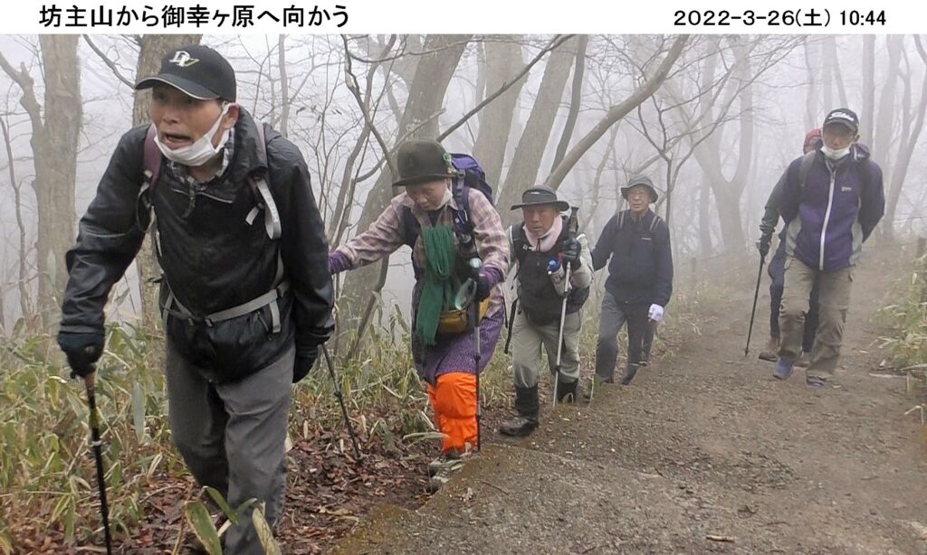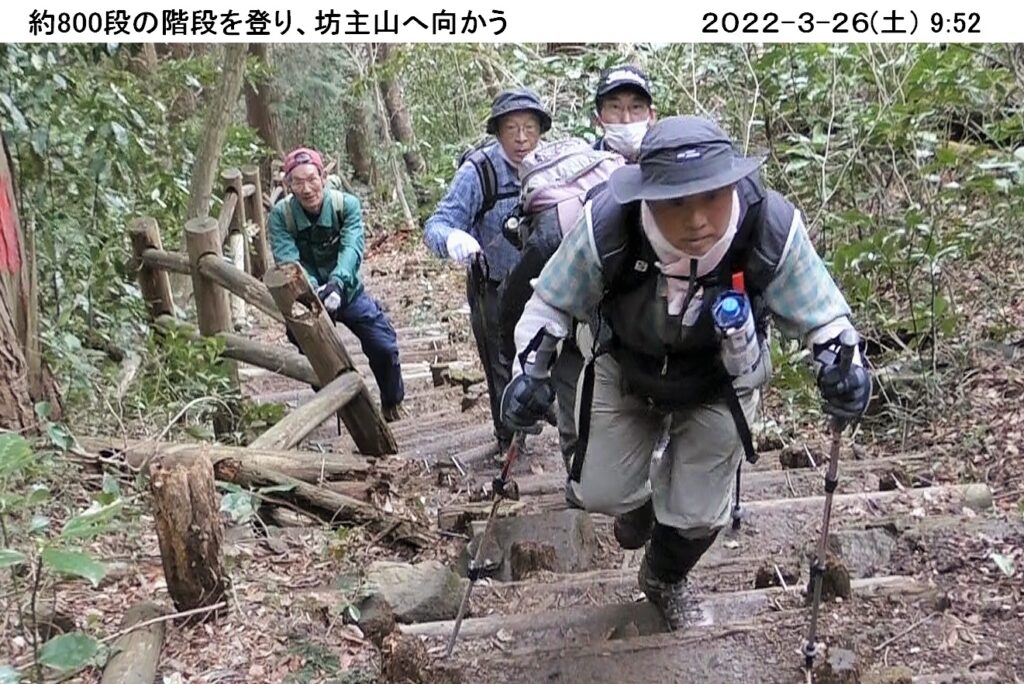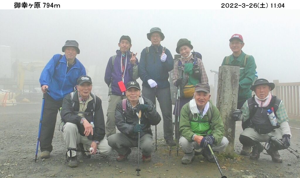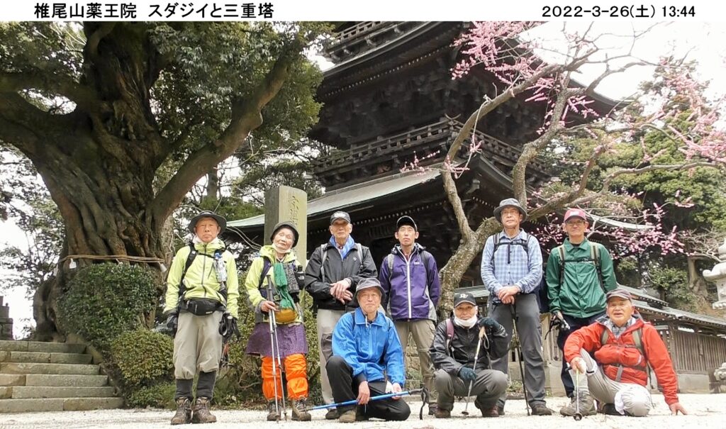 令和4年3月度のハイキングは3/26(土)、筑波山_薬王院コースと筑波山自然研究路を回るコース。夜半に雨が降り、強風予報の中、参加を心配したが、コマツGTから6名、現地直行3名計9名が集まり、少人数ながら開催する事が出来た。