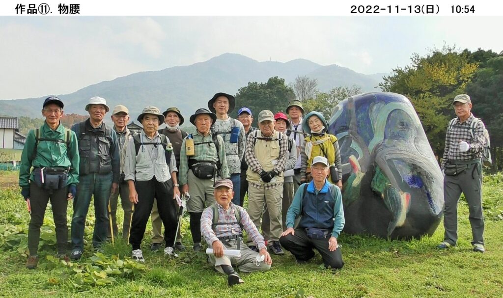 令和4年11月度のハイキングは11/13(日)、桜川市(旧大和村)の「雨引の里と彫刻2022」。この催しは里山や集落を舞台に、石彫を中心に様々な33作品が総行程13kmに渡って設置され、点在する作品群を鑑賞しながら巡る野外の展覧会です[開催期間_10/10(月)~12/11(日)]。
