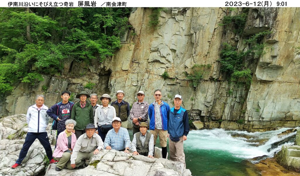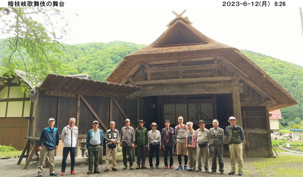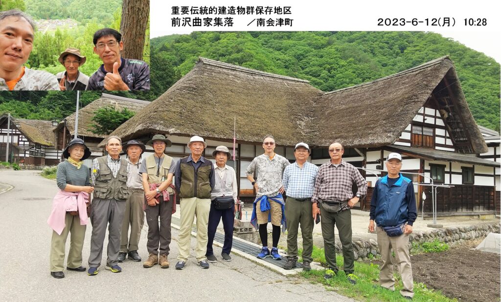 2日目は雨にも降られず、観光スポットを見ながら帰路に。「檜枝岐歌舞伎」の舞台を見る。自然の地形に合わせた石段席に感嘆。南会津町の「屏風岩」はそそり立つ岩や、遊歩道を下ると現れる「鱒止まりの滝」が絶景だ。「前沢曲家集落」では茅葺きの屋根葺き替え3,000万円に驚く。いろいろ見聞きし、コマツGTに15:05無事到着。楽しい一泊ハイキングでした。