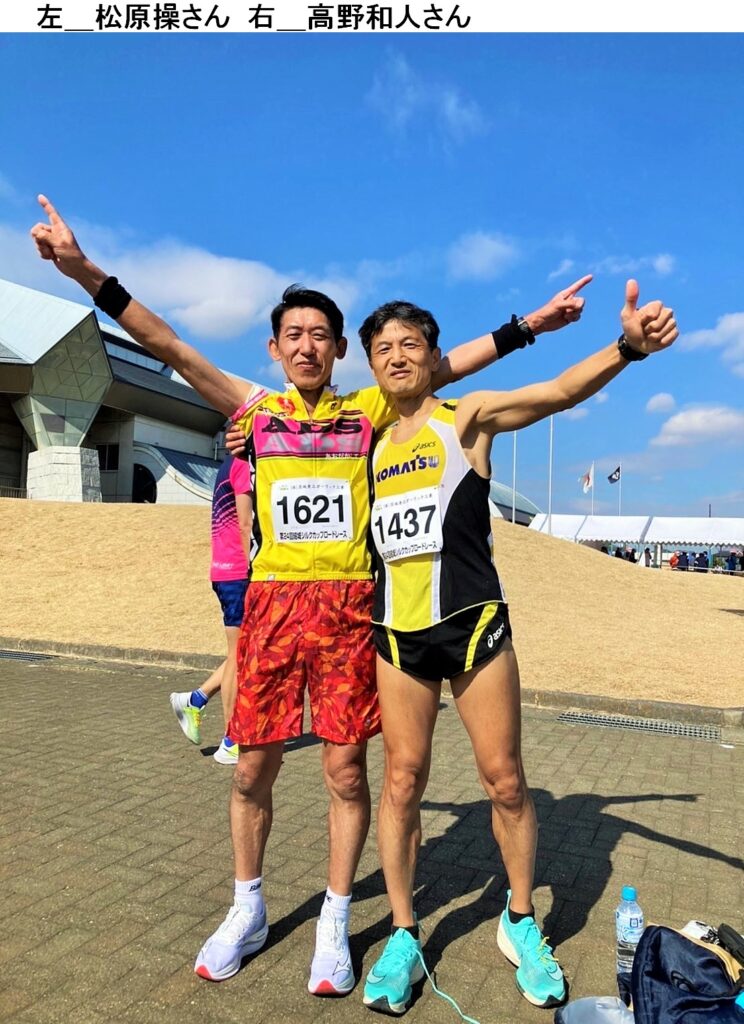 2月18日(日)に第24回結城シルクカップロードレース大会が開かれ、ハイキングクラブの松原操さんが10km男子60歳以上の部107人が出場した中で力走、第三位入賞を果たしました。同じコマツ仲間で出場した高野和人さん(10km男子50歳代の部142人中第9位)と、健闘を讃え合ってのツーショットも素晴らしい。お二人の今後の活躍を期待します。