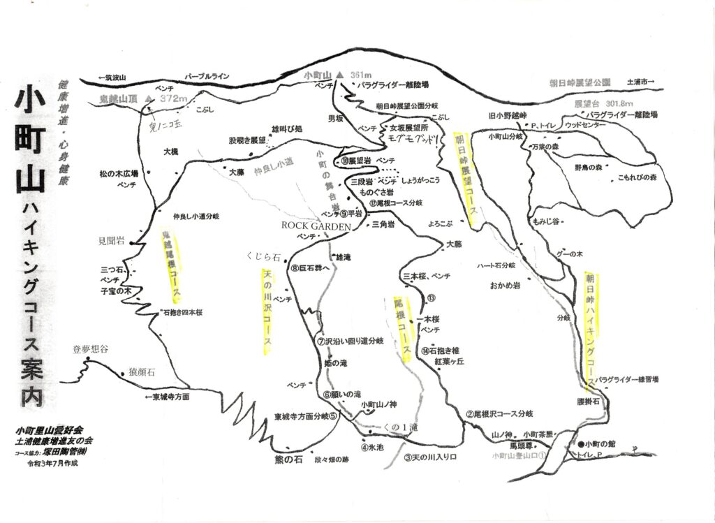 小町の館Pをスタートし、天の川沢コースから巨石群の中を歩き、小町山に直接登ります。小町山から眺望の素晴らしい朝日峠展望公園に向かいます。展望公園から下り、もみじ谷を抜けて小町の館Pにゴールです。皆様奮ってご参加下さい。詳細については下の案内状及びハイキングコースマップを参照下さい。会員の方にはLINEグループor直接案内状のハガキ郵送にてご案内しております。