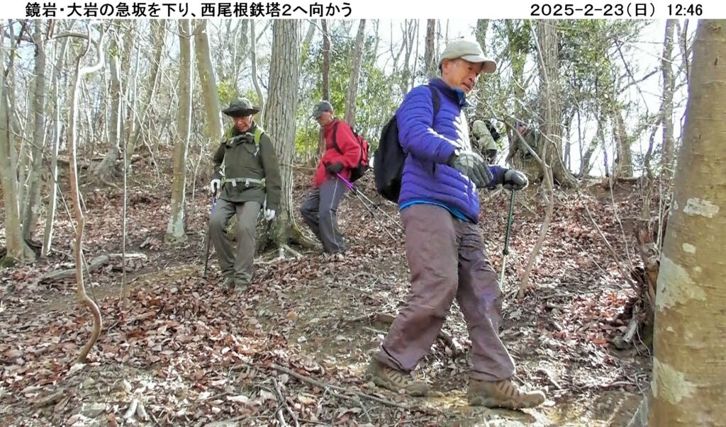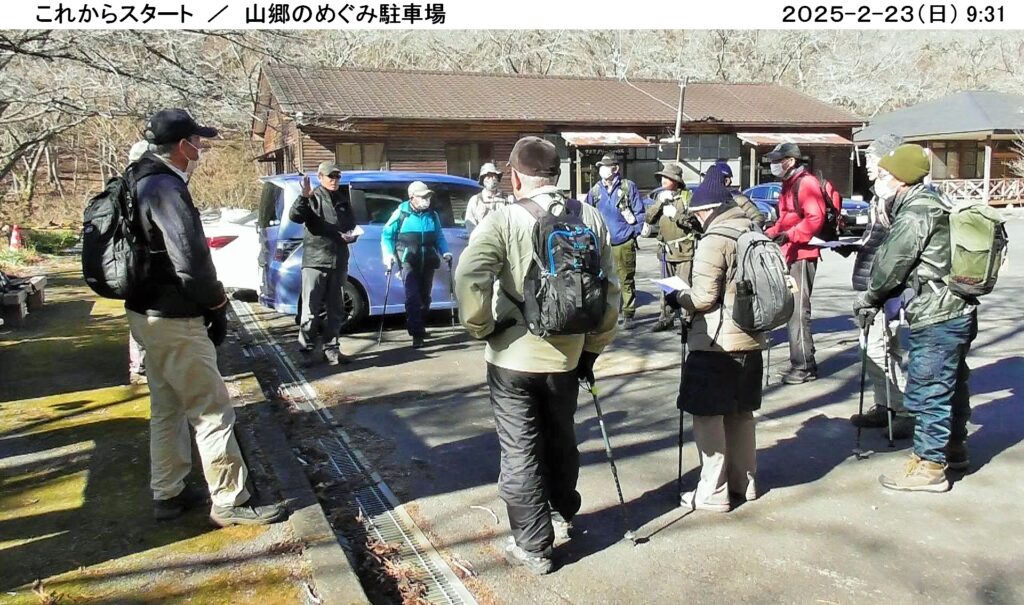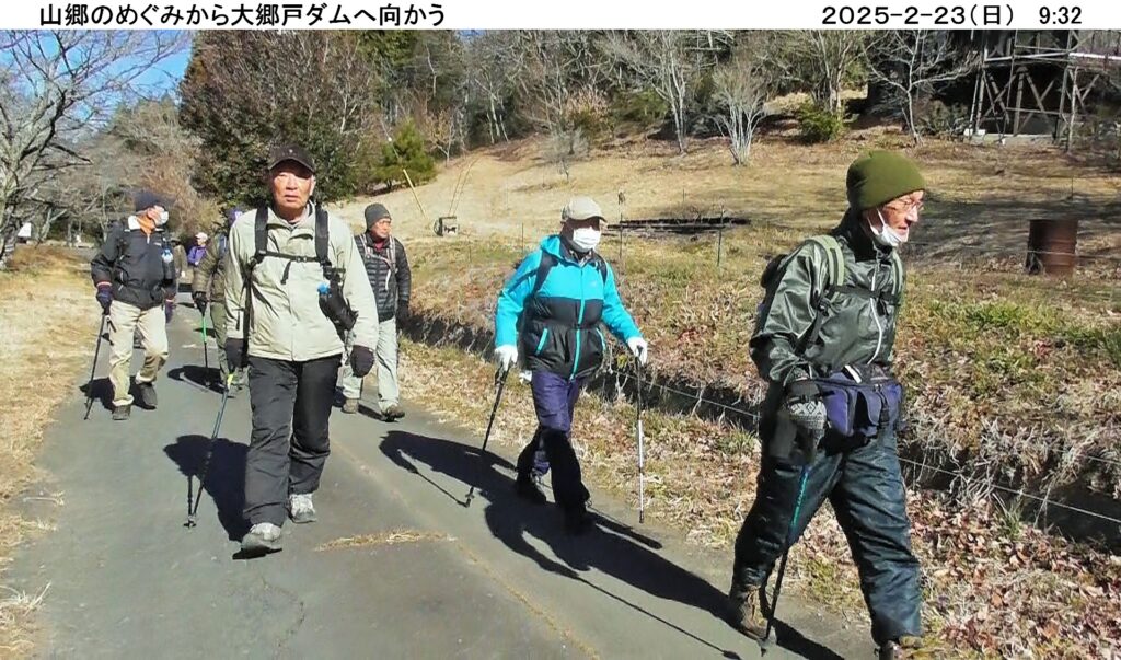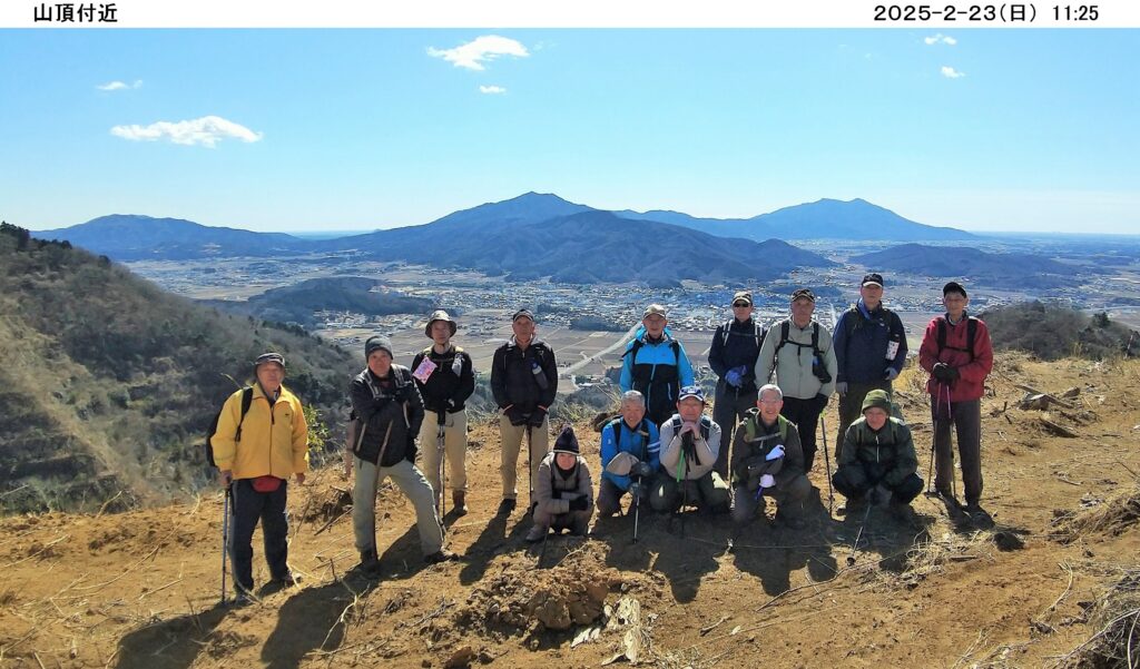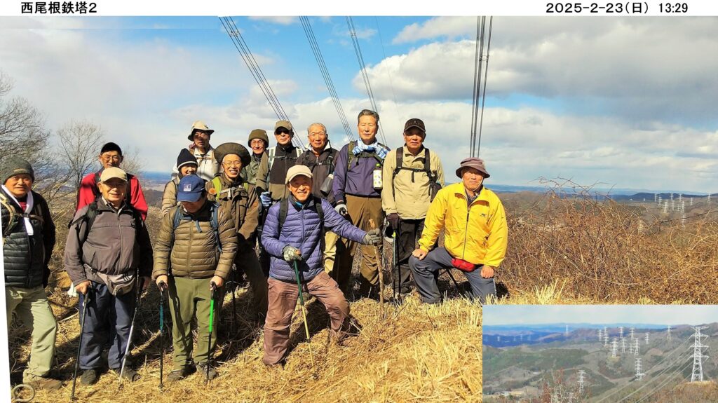 今回は14名が参加、今年最大の寒波襲来で、雪国の積雪は最大規模のニュースが流れる日でしたが、幸いにもスタート地点の大郷戸ダム近くの山郷のめぐみ駐車場は、無風、暖かい日差しの中、出発しました。最初登頂した富谷山の頂上付近は採石場で頂上は建機で削られてほぼ平になっており、樹木は無く砂漠状態でしたが、南は富士山、スカイツリー、東は筑波山・加波山、眼下には桜川市(旧岩瀬町)が一望できる絶景でした。残念ながら稼働している建機はキャタピラー、日立建機の油圧ショベルでした。その後、大郷戸アルプスと呼ばれる西尾根縦走コースを落葉の多い登山道で登り下りを繰り返しながら、心も体も折れそうになりながらも縦走しました。最後の西尾根鉄塔展望箇所からは福島県から栃木県に続く送電線、鉄塔が一望でき、栃木県の産業発展に寄与している様を実感しました。約5時間のハイキングでしたが、全員無事下山、満足する一日でした。