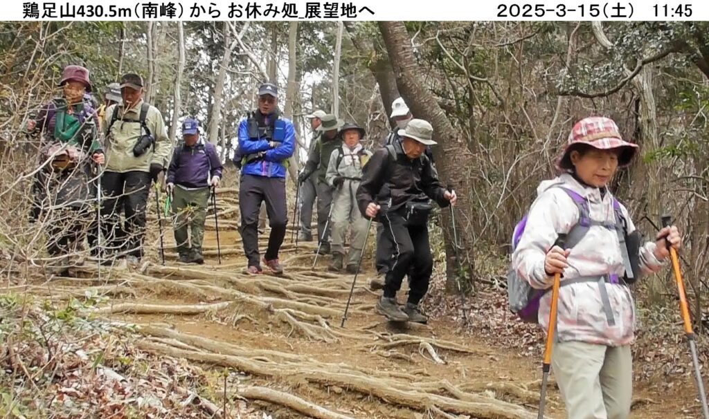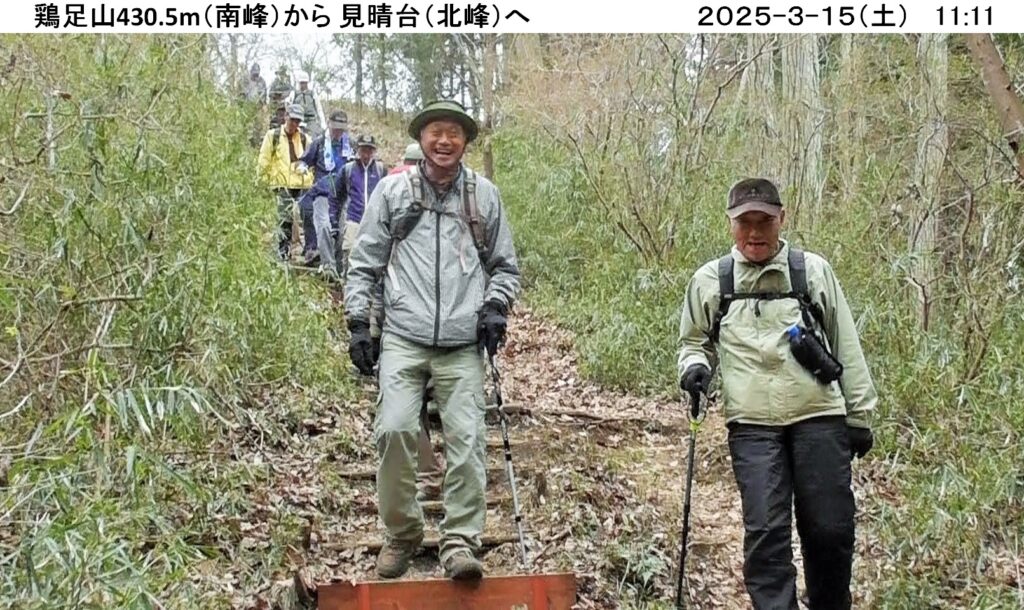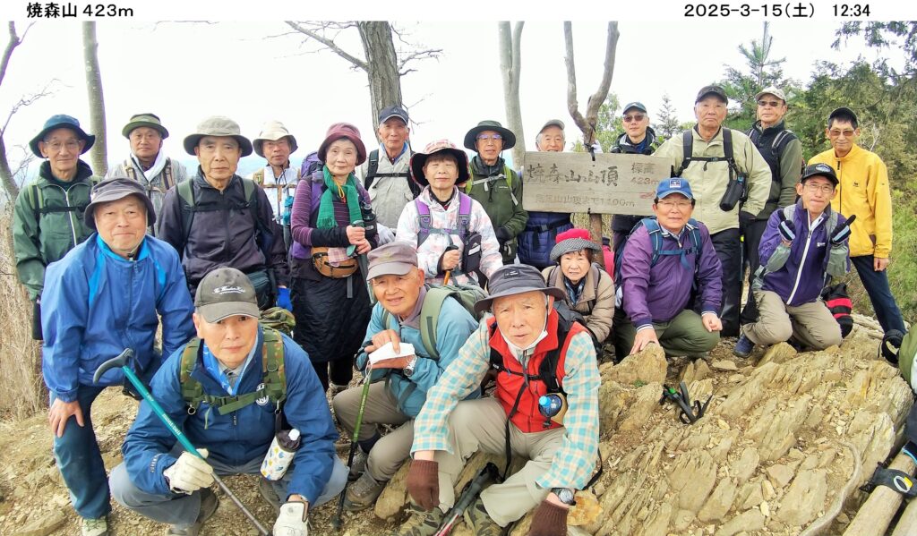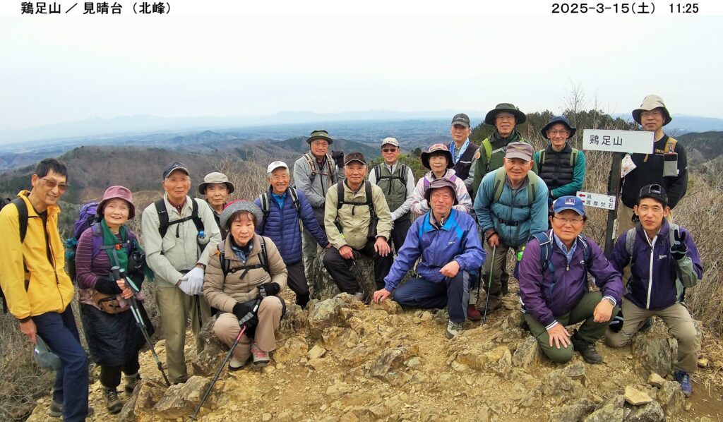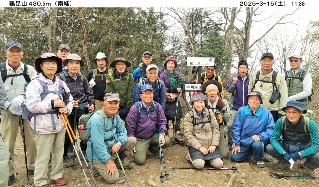 3/15(土) 栃木県茂木町・茨城県城里町の県境、焼森山(423m)鶏足山(430.5m)ハイキングに、曇天ほぼ無風の中、20名が参加しました。