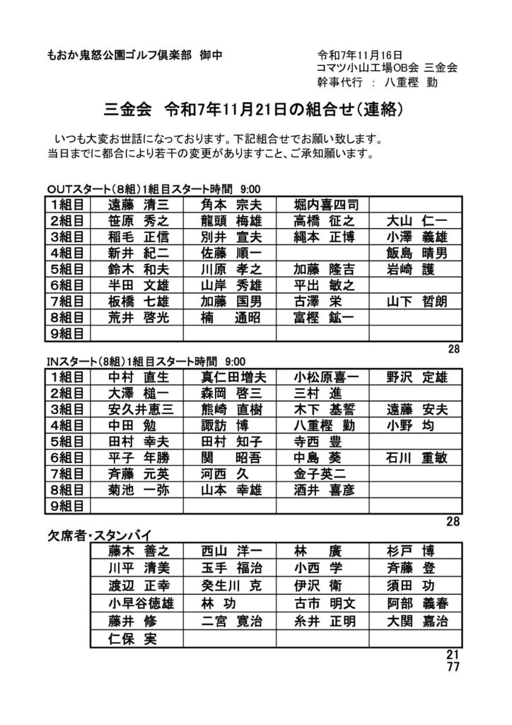 11月21日三金会組合せ