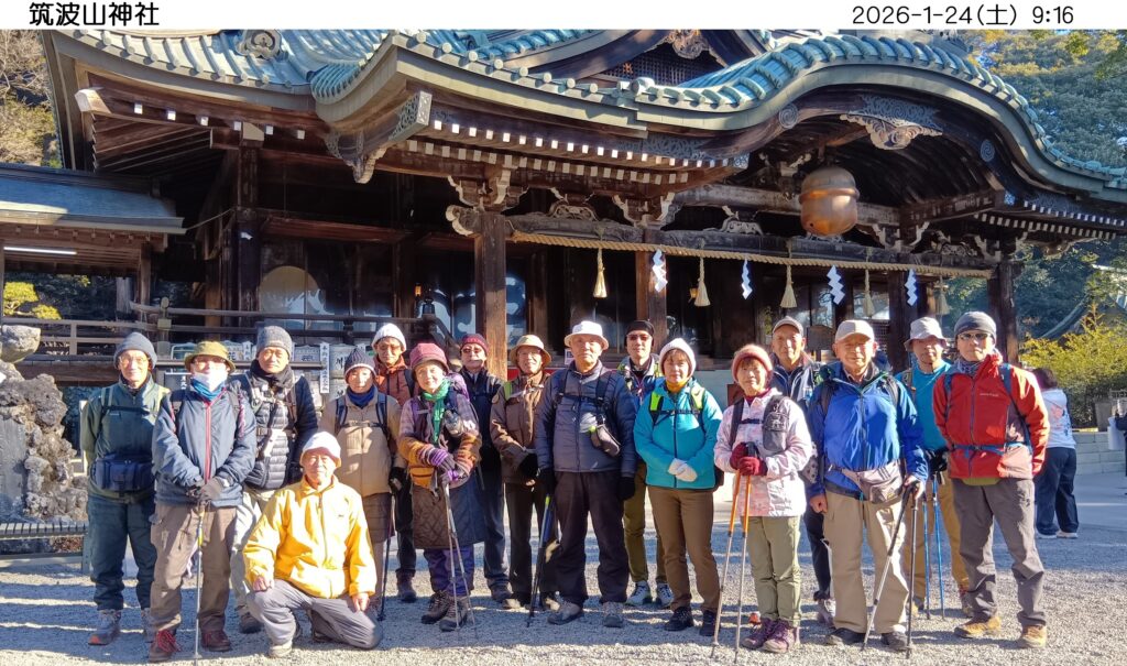 令和8年度最初のハイキングは1/24(土)17名参加により、筑波山神社参拝&筑波山登頂。