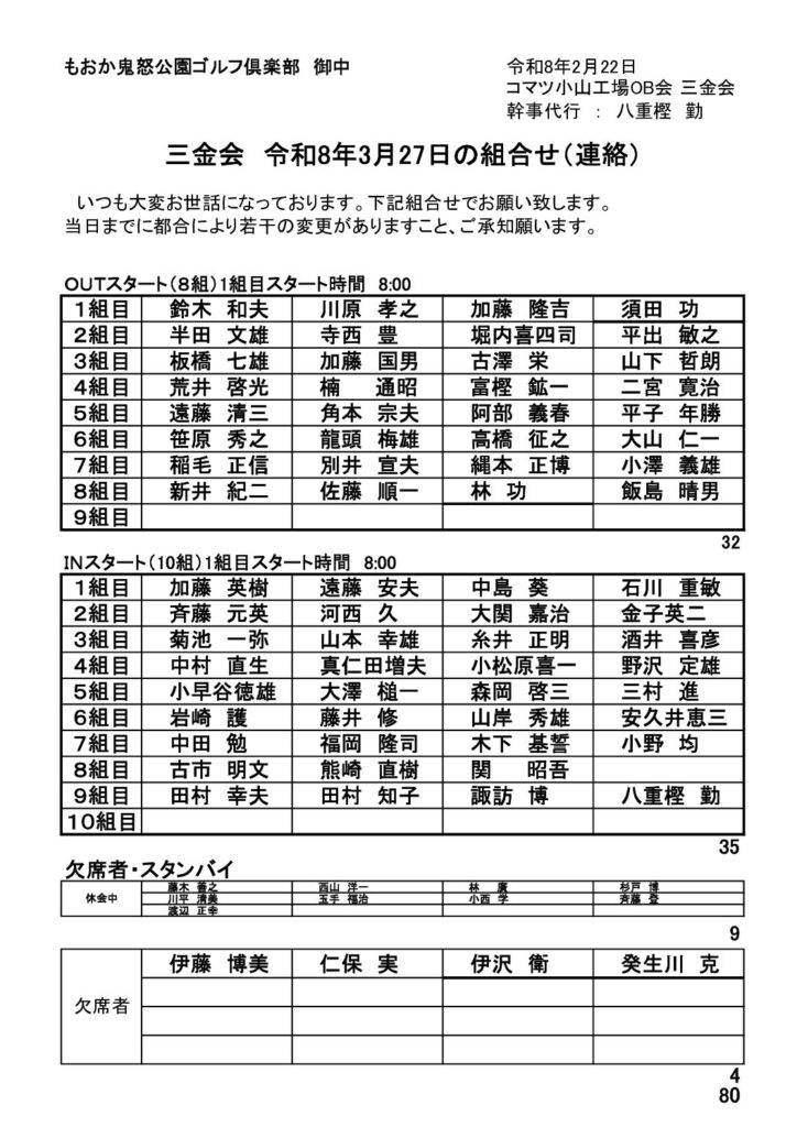 三月の三金会は3月27日(第四金曜日)に開催、集合時間:7時30分、8時スタートとなります。